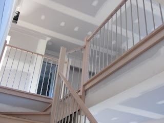 It was all quite on site when we went for a nose around yesterday afternoon, more doors have arrived and all the sinks have been delivered. The railings have been finished on the stairs and we are really pleased with how they look, it's very difficult when making choices at Studio M to envisage how it will all come together and what it will actually be like once it's in your home. At this stage we are not sure how the area underneath is to be finished off - is it filled in or just simply left open? There is nothing indicated on the plans and as we have never seen a Nolan in real life before we have no idea, maybe a look on the Metricon website might give us a hint.